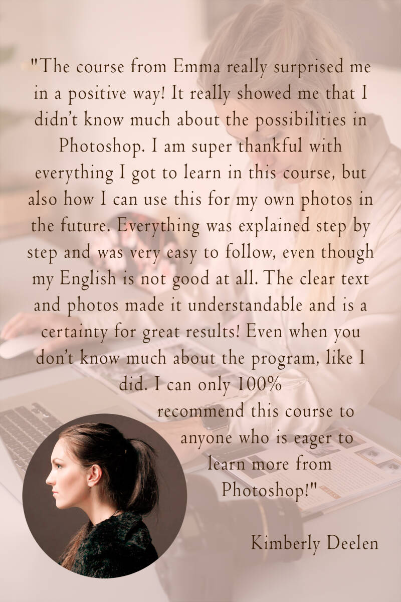 An advanced Photoshop Course with many different techniques to show you how I edit my photos! Every technique I normally use during my editing is explained, as I show you my workflow in 8 different photos! The course will be challenging if you are a beginner with the program, but since everything is explained step by step with a lot of print screens, photos and clear text, everyone can make it through!